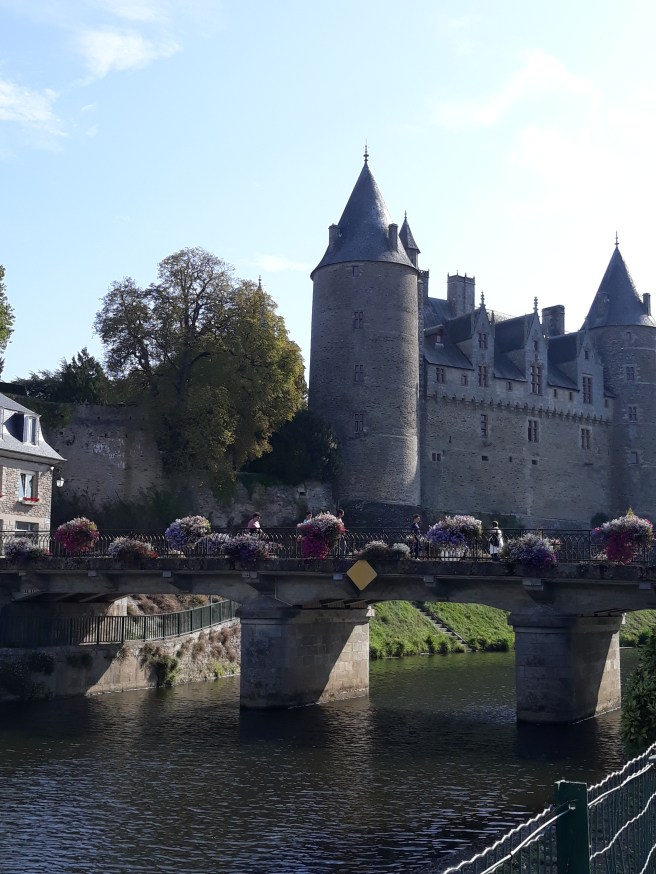 So many lovely places to see in Morbihan, near our ‘home from home ‘ close to Josselin. The town itself is built behind the turreted chateau of the Rohan family. They are descendants of Anne de Bretagne, who gave away Brittany as part of her dowry. The family tomb is in the nearby basilica of Notre Dame de Ronciers, the imposing church centuries old in the centre of the old town. Be sure to go up the clock tower for the fabulous views. Many half timbered houses are dotted around it’s medieval streets. A bustling place in the summer months but a quiet place for the locals in winter. ‘Festiv’ete’ is the summer festival bringing free concerts, markets and family events to the streets in July and August. The highlight has to be the fireworks display in front of the chateau on July 14th from the banks of the Nantes – Brest canal. Lots of barges wind their way down this waterway intermingled with the seasonal electric tourist boats in the summer. Every Saturday, a fabulous market takes place in the town centre bringing life and sounds and delicious smells to the streets. A romantic stroll through the aptly named ‘Bois d’amour’ is a pleasant way to spend an hour. Getting hungry ? Well several good restaurants serve food all year round. It’s also a good base to visit other nearby towns being equidistant from the north and south coasts. Bonne visite !